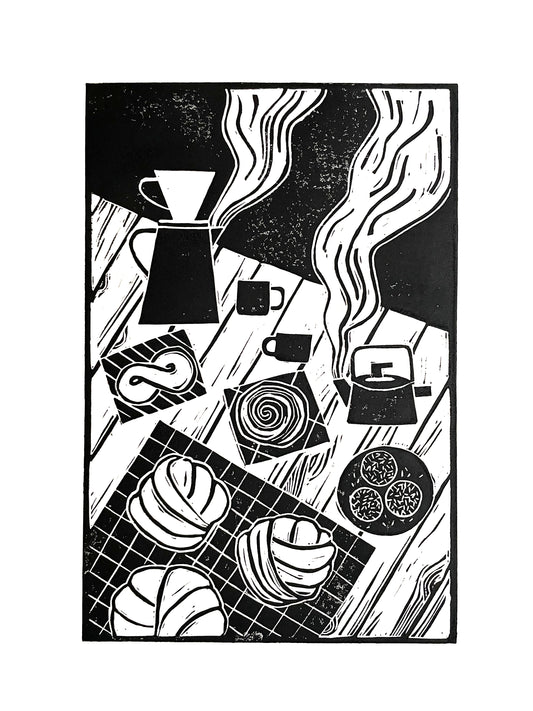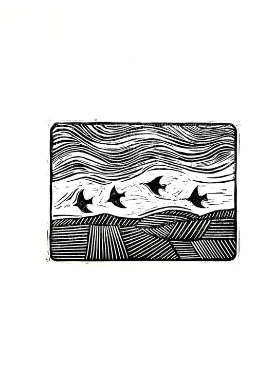 In 2021 I created Somewhere in Between and focused my attention on linocut printing, a technique that combines craft, illustration and design in a bold, graphical manner.