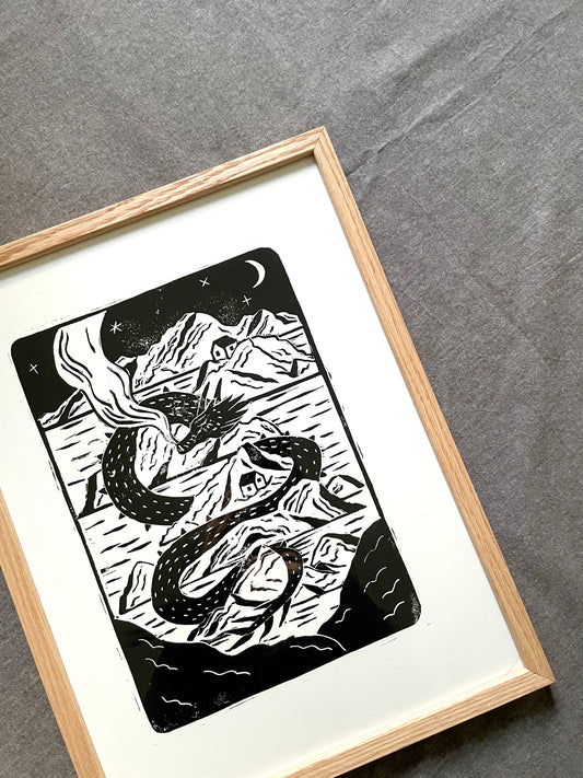 Original Lino Print - Sleeping Dragon