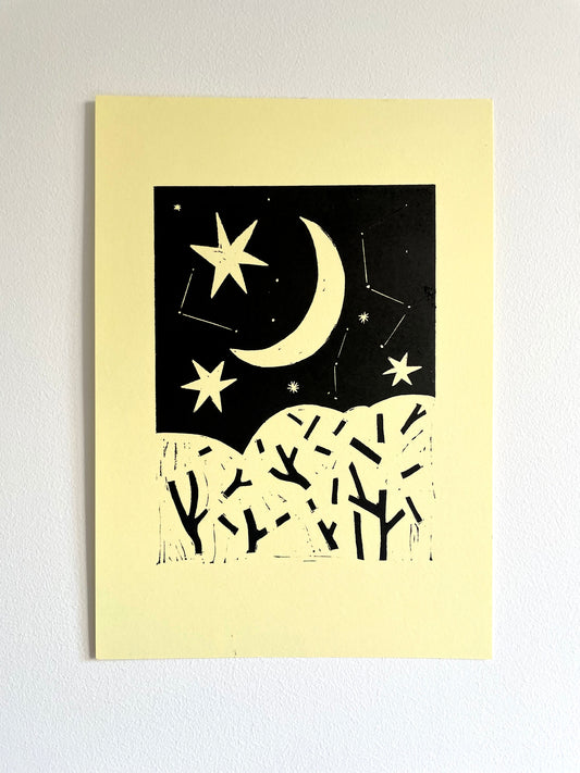 Original Lino Print - Moon & Stars