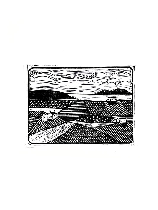 Original Lino Print - Somewhere in Between - Over the Fields